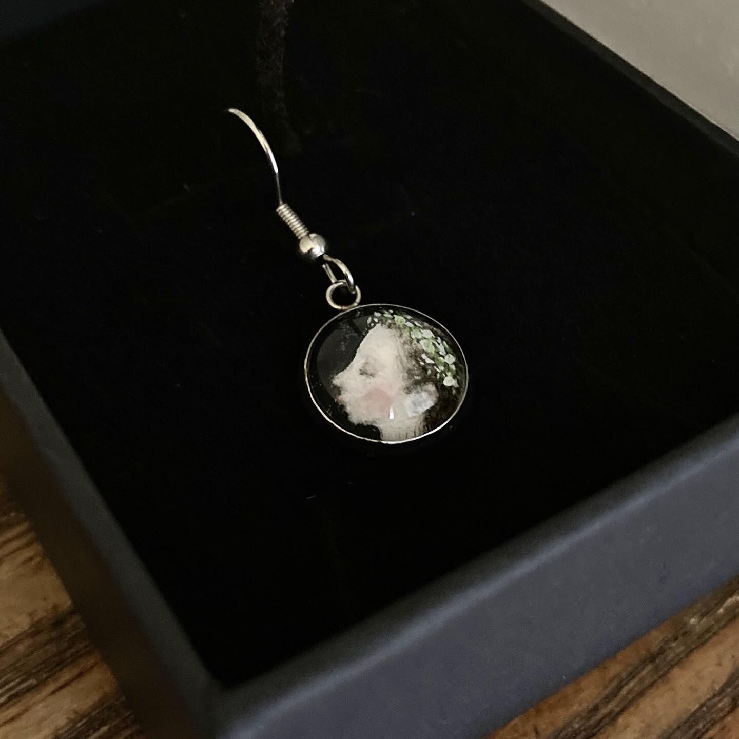 原画を硝子に閉じ込めたピアスになります。