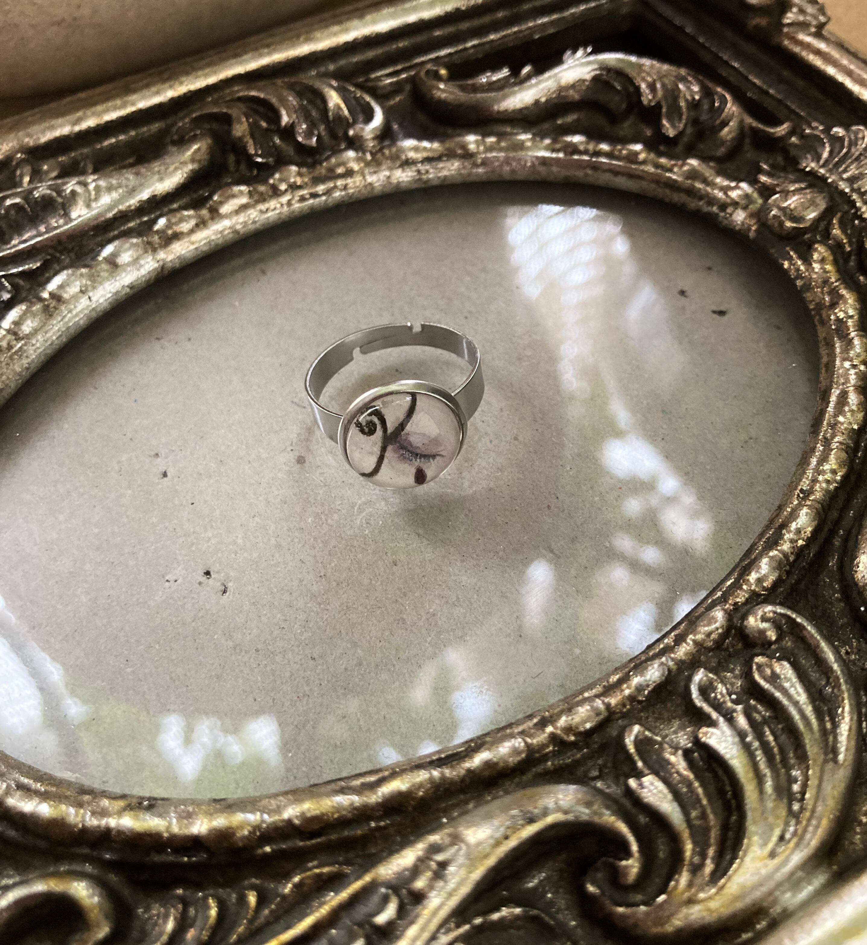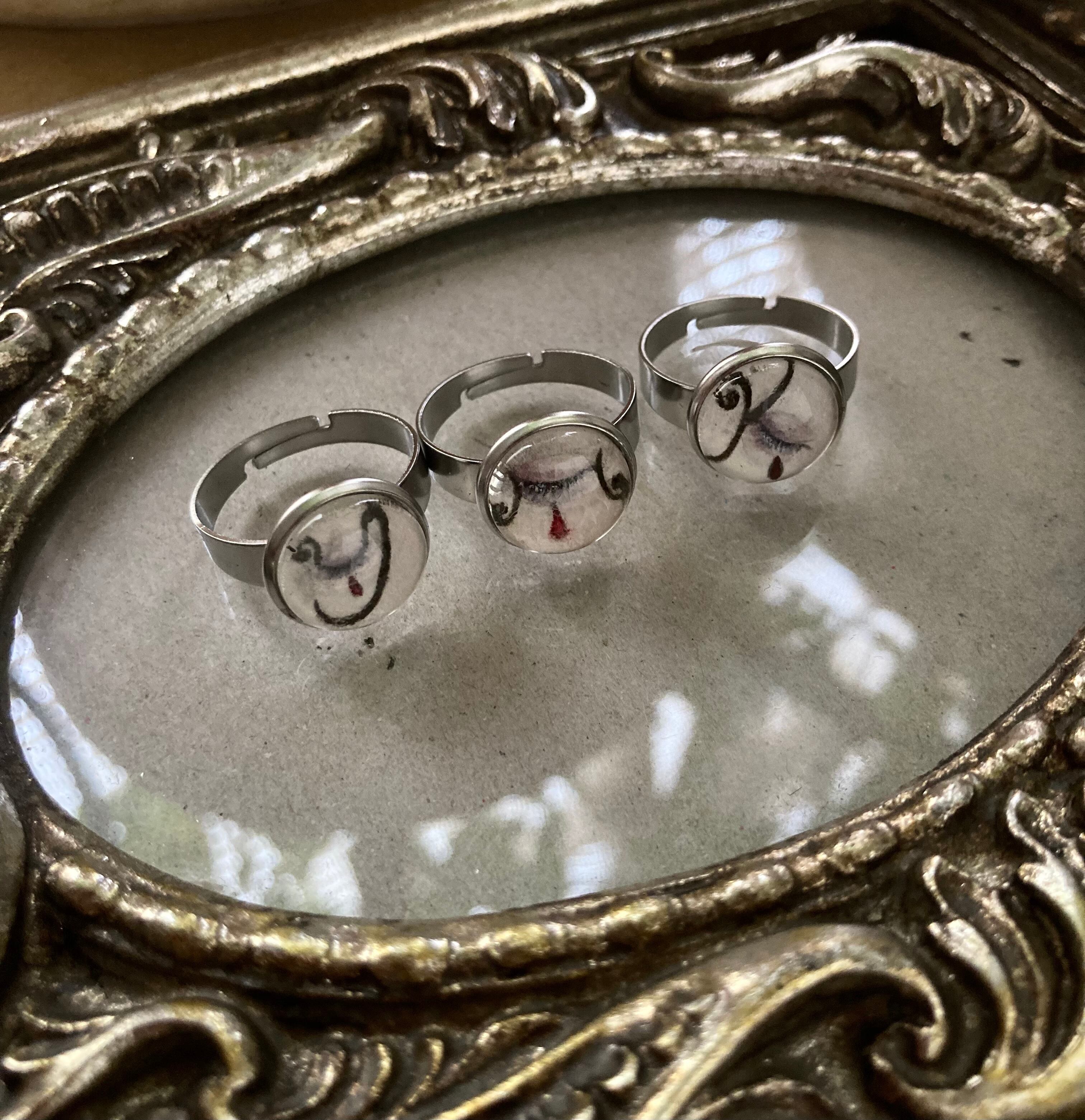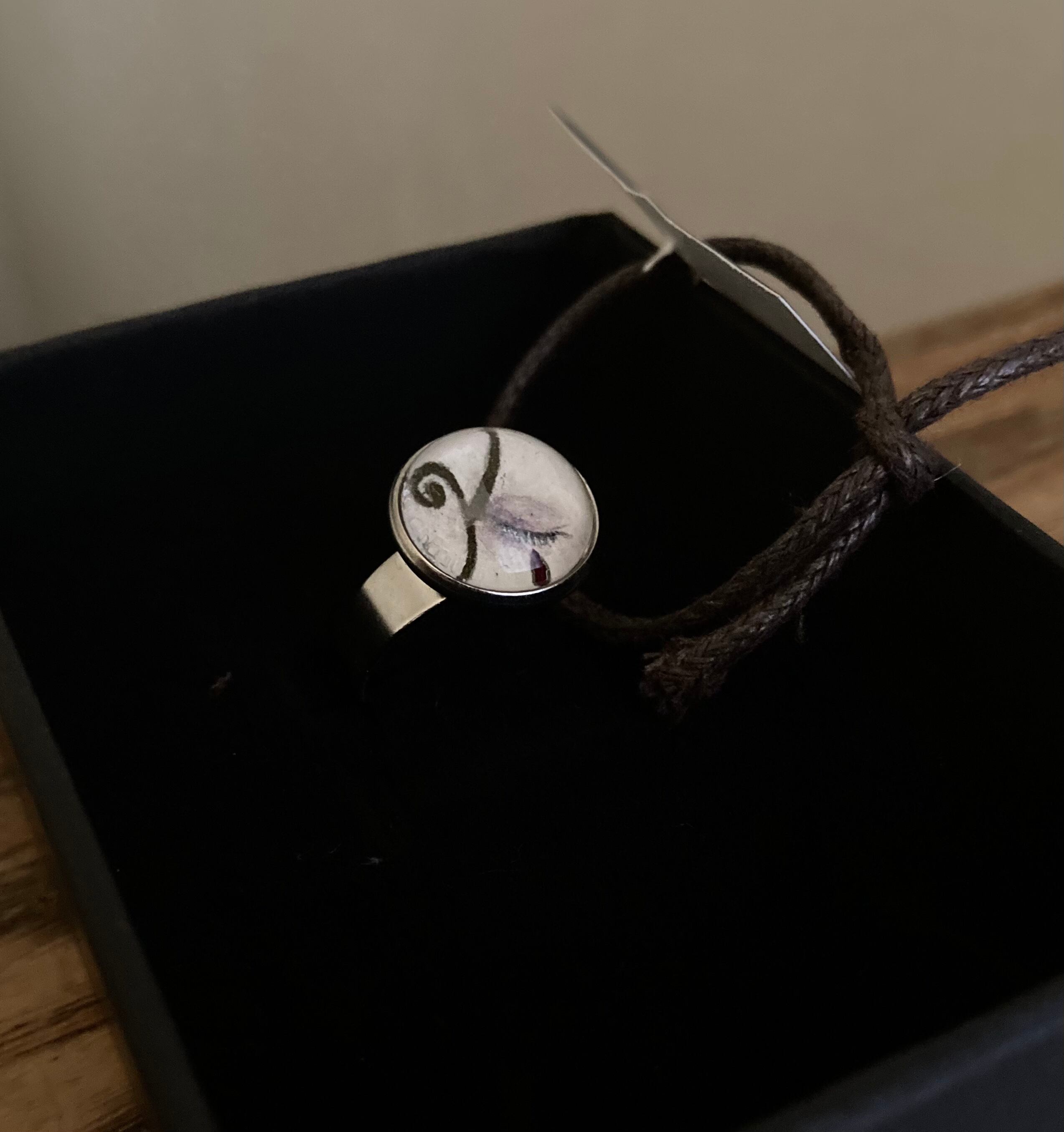 素材 : シャープペンシル、ペン、水彩、アルシュ紙、ガラスカボション、ステンレス